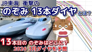 スポンサーリンク JR東海 衝撃の のぞみ13本ダイヤ、13本目のスジ(時刻)はどこに? 2025/12/20 JR東海 スポンサーリンク JR東海では、2026年3月にダイヤ改正を実施します。 東海道新幹線について今回の改正の目玉となっているのは、 多客期に …