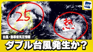 スポンサーリンク 【ダブル台風発生か?】台風25号に加え、新たな熱帯低気圧が発達中 2026/1/3 台風情報 スポンサーリンク 台風25号の最新情報と、新たに発生した熱帯低気圧についてウェザーニュースがお伝えします。 台風25号は「強い」勢力で …