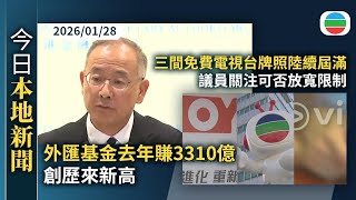 スポンサーリンク 今日新聞重點:外匯基金去年賺3310億創新高 余偉文指多個利好因素疊加今年未必持續|三間免費電視台牌照將陸續屆滿 議員關注可否放寬限制|香港新聞|無綫新聞|TVB News|2026/01/28 2026/1/29 今日 スポンサーリンク 00:00 外匯基金去年賺3310億,是自基金成立以來最多。金管局總裁余偉文指,是因貿易摩擦影響較預期小等多種因素疊加,今年 …