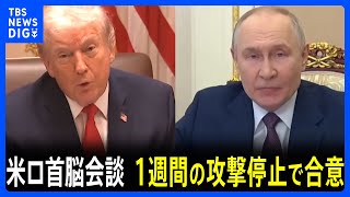 スポンサーリンク トランプ氏「ウクライナへの1週間の攻撃停止で合意」米ロ首脳電話会談 ゼレンスキー氏「実現を期待している」と投稿 一方ロシア大統領報道官「コメントできない」|TBS NEWS DIG 2026/1/31 アメリカ合衆国大統領 スポンサーリンク トランプ大統領はロシアのプーチン大統領と電話会談し、ウクライナへの1週間の攻撃停止で合意したと明らかにしました。