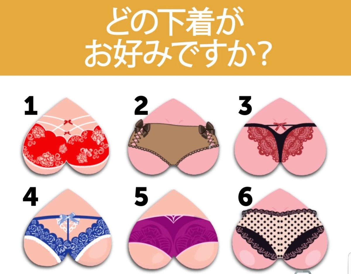 男目線でも女性目線でも好みというか、この中なら渋々これかなーって感じじゃない?心理を含ませる為に柄を作ってるように感じる。黒のレースが付いてなければ6