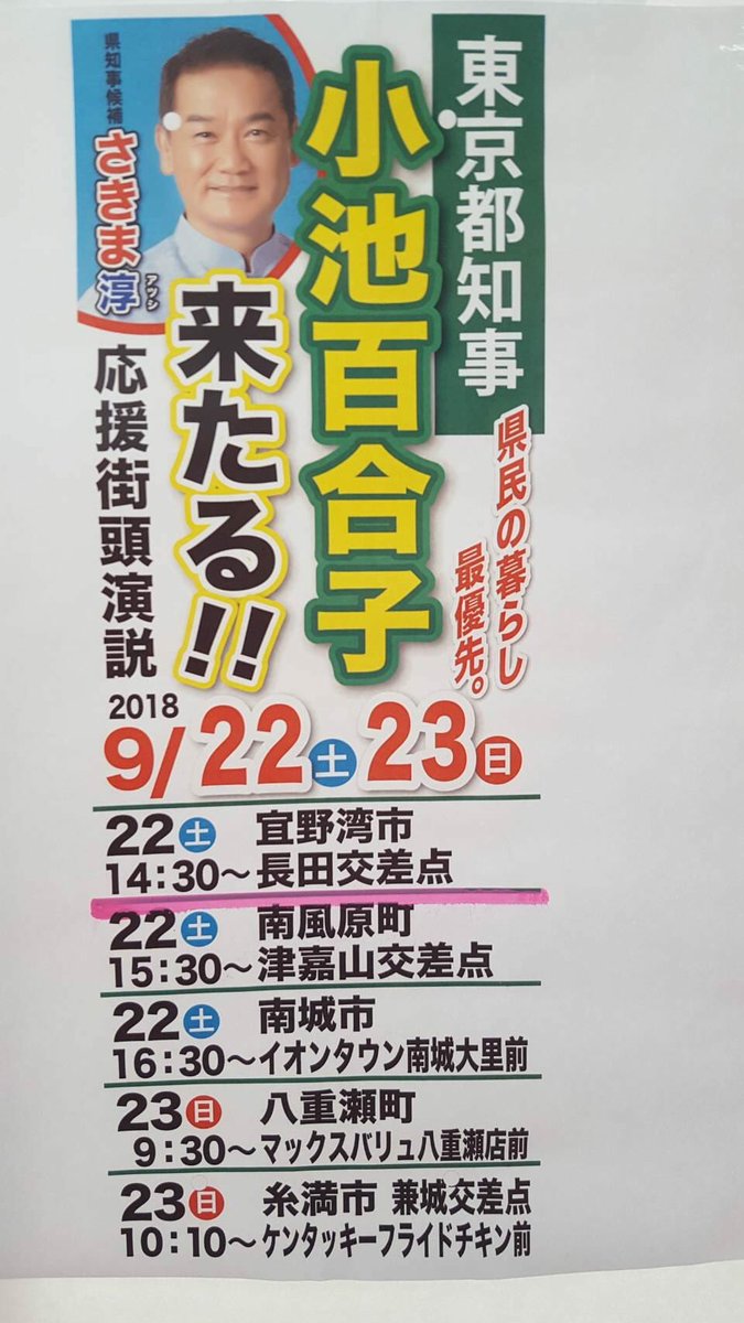 沖縄だとまだ、緑の小池はジャンヌダルクみたいな存在感があるんですか?— (@shizqi) 9:17 – 2018年9月21日