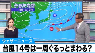 スポンサーリンク 台風14号は一周ぐるっとまわる? 2020/11/12 台風情報 スポンサーリンク 伊豆諸島に記録的な雨を降らせた台風14号は南に進路を変えながら勢力を弱め、12日(月)9時、小笠原近海で熱帯低気圧に変わりました。今後は小笠原近海でしばらく … 関連ツイート