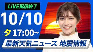 スポンサーリンク 【ライブ】最新天気ニュース・地震情報2024年10月10日(木)/晴れのエリアが拡大〈ウェザーニュースLiVEイブニング・岡本 結子リサ/宇野沢 達也〉 2024/10/10 ニュース スポンサーリンク 【明日の天気に関する情報】 お天気アプリ「ウェザーニュース」からも随時最新情報をお伝えしています …