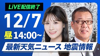 スポンサーリンク 【ライブ】最新天気ニュース・地震情報 2024年12月7日(土)/〈ウェザーニュースLiVEアフタヌーン・戸北 美月・森田 清輝〉 2024/12/8 天気 スポンサーリンク 【今日/明日の天気に関する情報】 お天気アプリ「ウェザーニュース」からも随時最新情報をお伝えしています …
