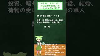 スポンサーリンク ロマンス詐欺 #詐欺 #Romancescam #国際ロマンス詐欺 #詐欺 #SNS #テロリスト #闇バイト #トクリュウ #ずんだもん #shorts 2025/4/11 SNS スポンサーリンク 日本で実際に起きたロマンス詐欺の被害事例を紹介します。SNSを利用した危険な手口に注意してください。 VOICEVOX:ずんだ …