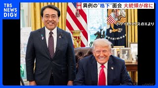 スポンサーリンク 異例の“格下”会談 日米関税交渉 赤沢大臣トランプ大統領らに相互関税・自動車関税などに「見直し」求める トランプ氏「日本との協議は最優先だ」|TBS NEWS DIG 2025/4/21 アメリカ合衆国大統領 スポンサーリンク 日本時間のけさ行われた日本政府とアメリカ政府の関税交渉。赤沢経済再生担当大臣はトランプ大統領と会談し、関税の見直しを …