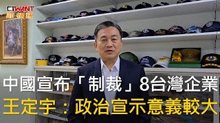 スポンサーリンク CTWANT 政治新聞 / 中國宣布「制裁」8台灣企業 王定宇:政治宣示意義較大 2025/7/14 経済制裁 スポンサーリンク 中國商務部今(9)日宣布將8家台灣實體列入兩用物項出口管制管控名單。對此,民進黨立委王定宇認為,政治宣示的意義較大, …