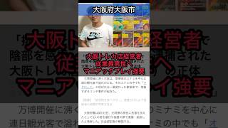 スポンサーリンク 大阪トレカ店経営者、従業員男性へマニアックプレイ強要 2025/9/18 大阪 スポンサーリンク 2025年9月16日、大阪市のトレーディングカード店オーナーの男と従業員の男2人が、元同僚の男性に対して度重なる暴行を加え …