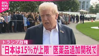 スポンサーリンク 【トランプ政権】“日本は15%が上限” 来月1日から発動する医薬品への100%の追加関税について 2025/10/3 アメリカ合衆国大統領 スポンサーリンク アメリカのトランプ政権が来月1日から発動する医薬品への100%の追加関税について、ホワイトハウス関係者は26日、日本に対し …